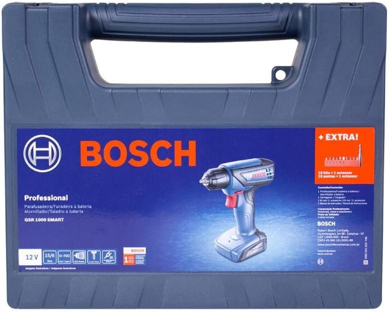 A Parafusadeira e Furadeira a Bateria Bosch GSR 1000 Smart, 12V, com Bateria de 1,5Ah embutida e carregador BIVOLT, garante máxima autonomia com até 600 parafusamentos por carga de bateria. Além disso, é a ferramenta a bateria de 12V com o melhor custo-benefício do mercado. Extretamente potente e com 15Nm de torque, vem ainda com interruptor de velocidade variável para melhor controle e qualidade dos seus trabalhos.