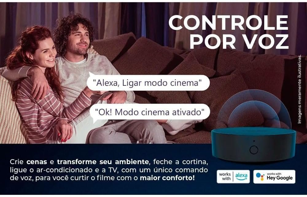 O Controle Remoto Universal Inteligente é projetado com Wi-Fi, o que atende à demanda da maioria das famílias. com seu sistema IR, o que permite a compatibilidade de vários dispositivos que usam controles convencionais. Controle diversos aparelhos eletrônicos, compatíveis com várias marcas do mercado, unificando todo o ambiente em um único controle. Funciona com o Alexa e Google Home, garantindo ao usuário uma experiência de controlar seus aparelhos através de comandos de voz, proporcionando à sua vida inteligente muito mais comodidade e prazer. Modelo: EKAT-T304-M3 Entrada: DC 5V/1A(Não Incluso) Frequencia de IR: 38KHz Conexão: WiFi 2.4Ghz IEEE802.11 Distância do controle: ≤10m Temperatura de trabalho: 0°C~50°C Umidade: ≤85%(sem condensação) Dimensões do produto: R65*21 mm