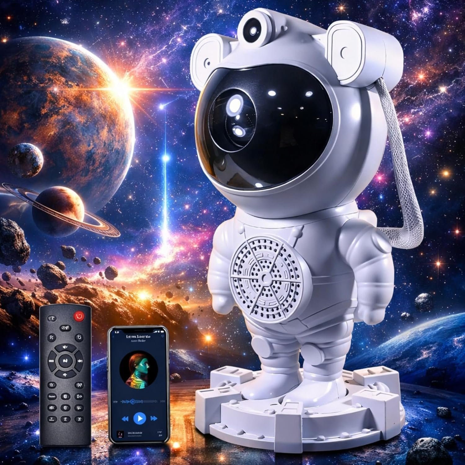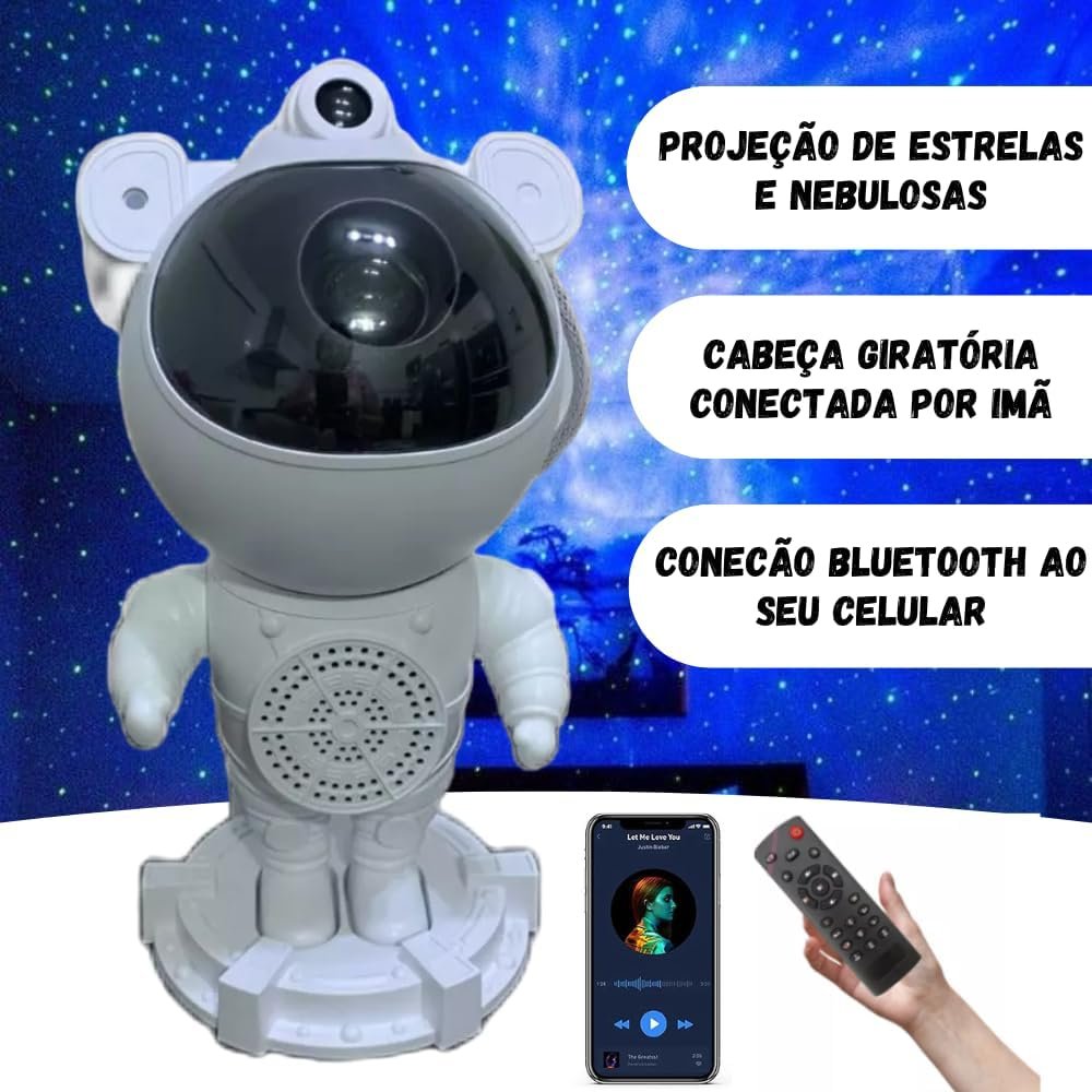 🧑🚀Experiência Sonora Imersiva com CONECTIVIDADE BLUETOOTH: Desfrute de um som envolvente conectando-se sem fio à caixa de som Bluetooth, enquanto simultaneamente ilumina o ambiente com as projeções estelares.
