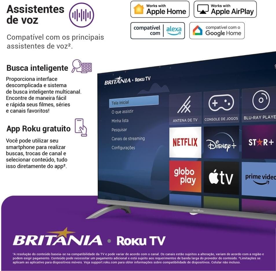 Smart TV 32″ HD Britânia B32CRA Roku TV LED Wi-fi HDMI USB