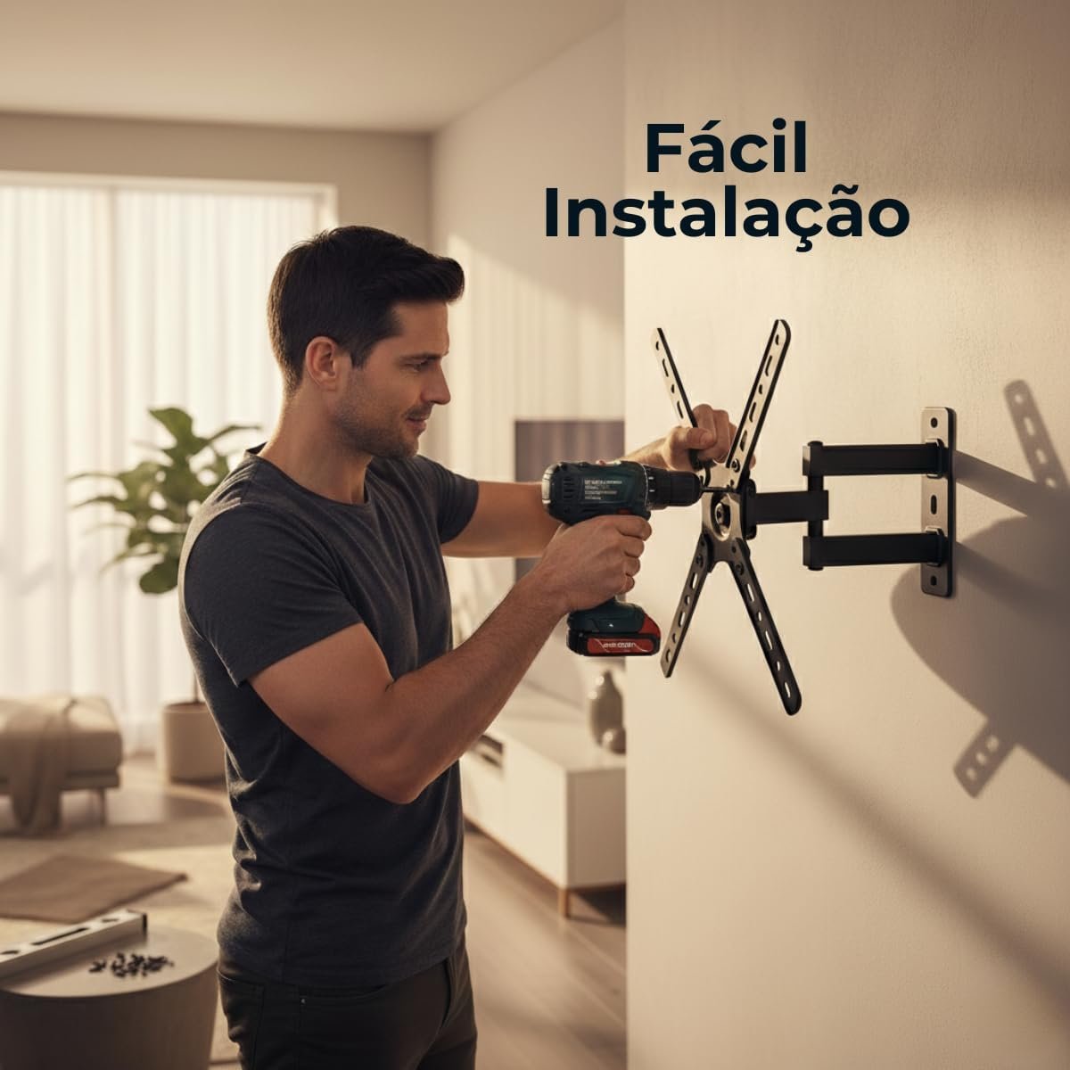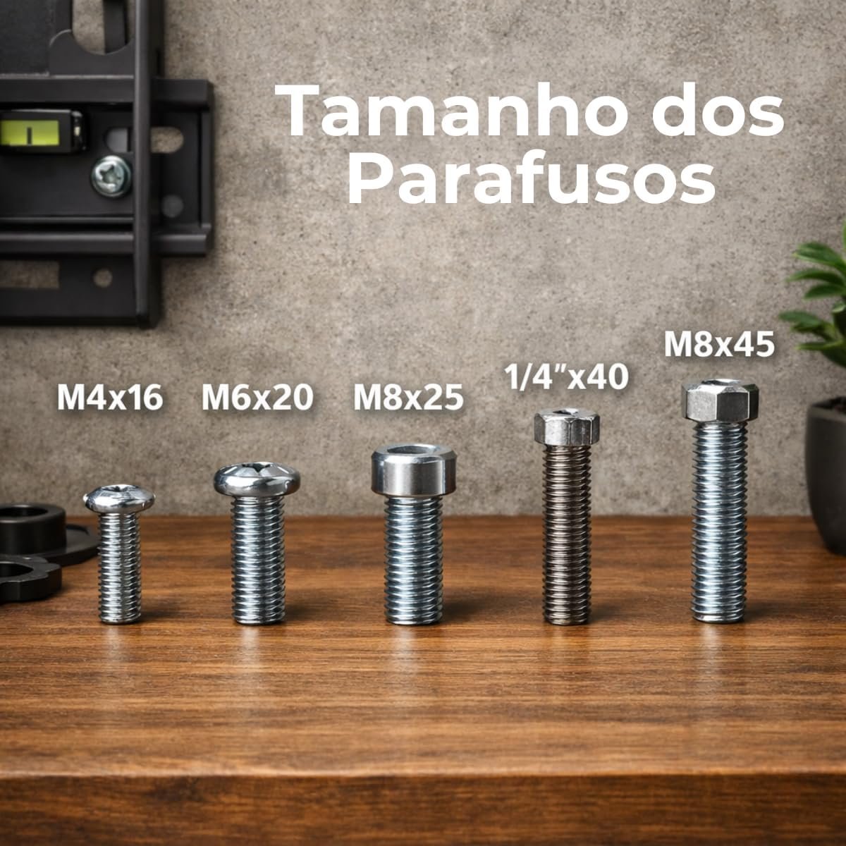 Instalação prática e precisa: Inclui nível bolha para um alinhamento perfeito, além de parafusos e buchas de alta qualidade para fixação segura.