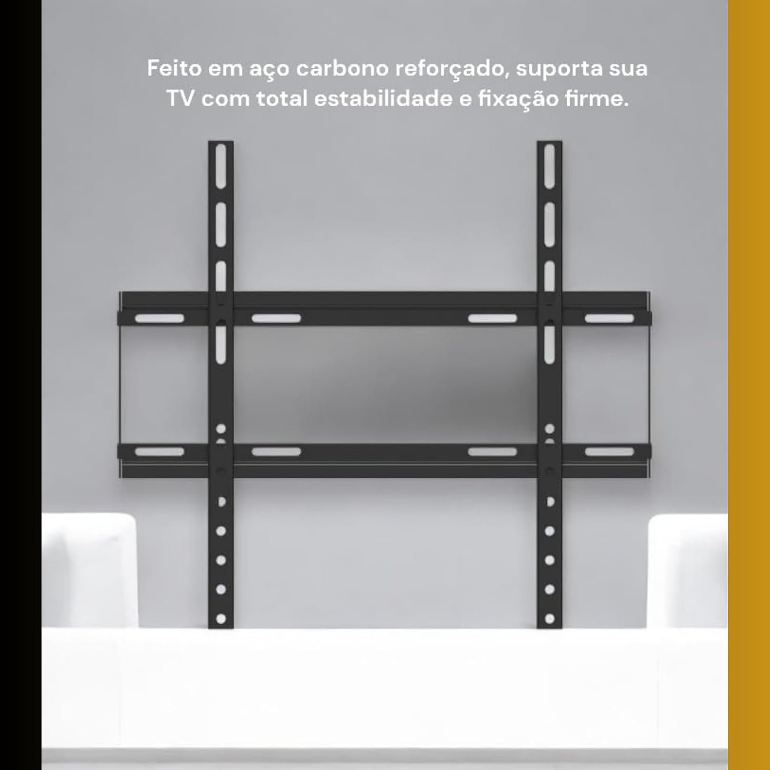 Design fixo, ideal para manter a TV próxima à parede, otimizando o espaço e garantindo um visual mais limpo e moderno no ambiente. Sem partes móveis – máxima segurança e firmeza! 🧱✅